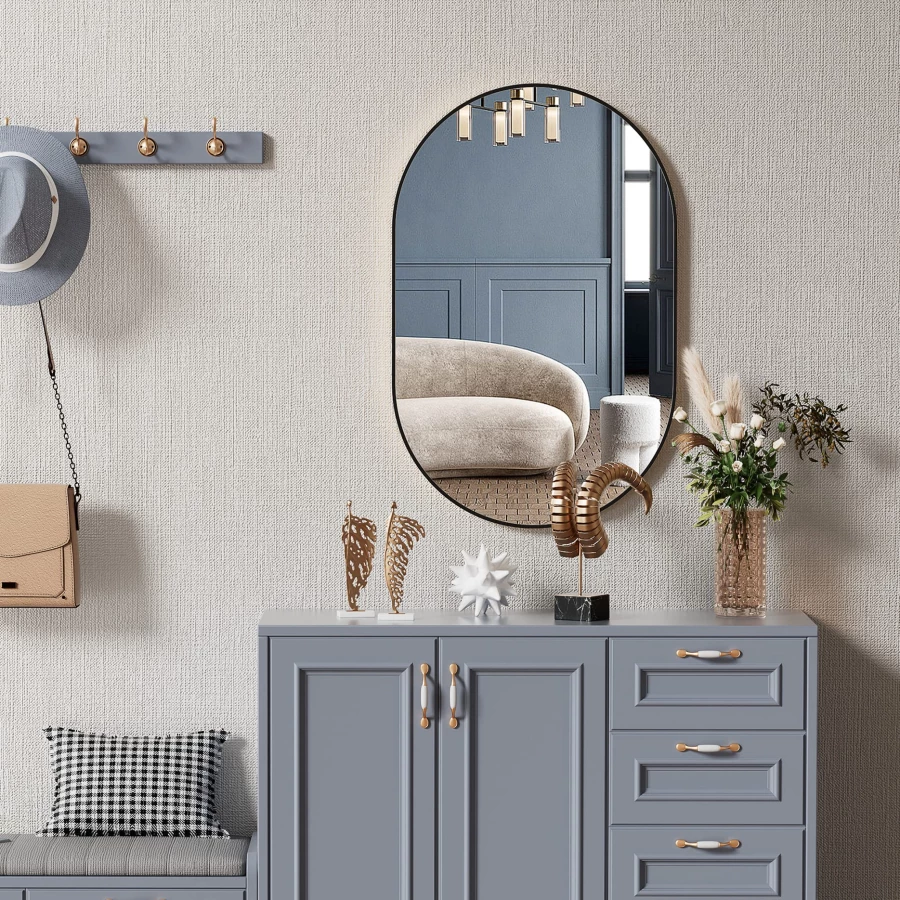 Owalne lustro to idealne uzupełnienie łazienki, przedpokoju, garderoby, salonu oraz innych pomieszczeń w stylu loft i nie tylko.