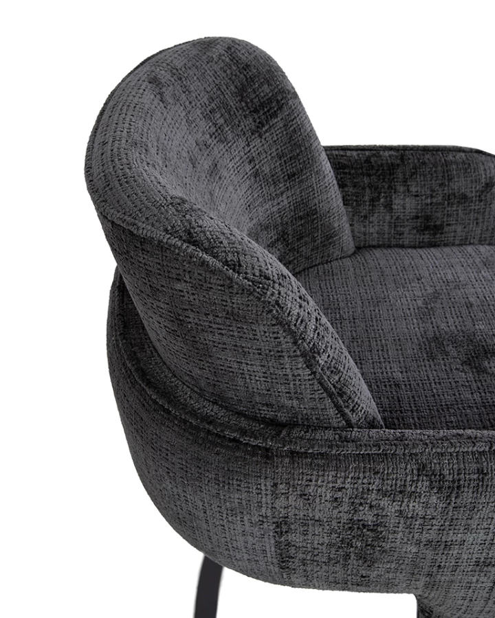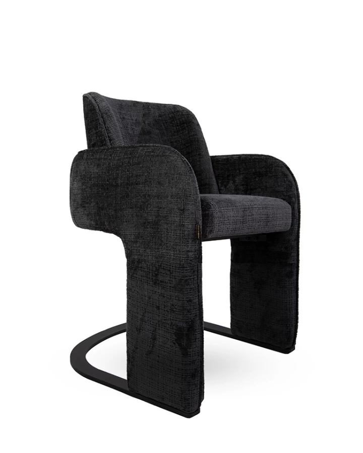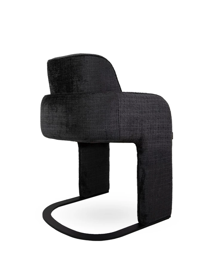Wykończone tkaniną Davis Cremona 97 w głębokiej czerni, krzesło wprowadza elegancję i wyrafinowanie.