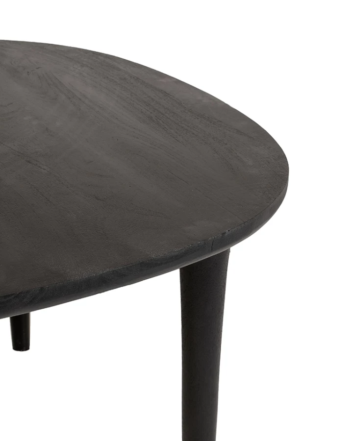 Wykonany z litego drewna mango i wykończony w eleganckiej czerni, zachwyca subtelną asymetrią i delikatnie zaokrąglonymi liniami.