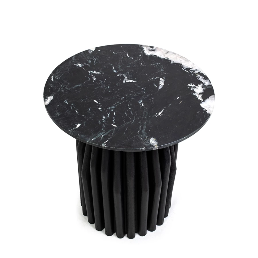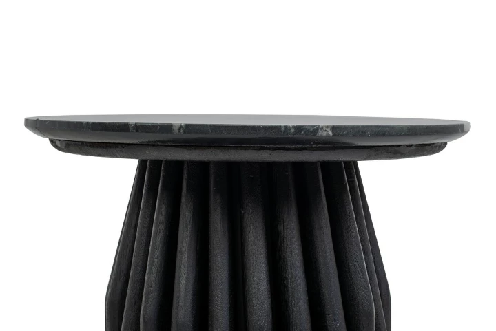 Wyjątkowe połączenie naturalnych materiałów, solidna podstawa z drewna mango wnosi ciepło i egzotyczny charakter, a blat z marmuru Black Marine dodaje całości wyrafinowanej elegancji, ten kontrast struktur tworzy mebel, który przyciąga wzrok, łącząc luksus z naturą w nowoczesnym wydaniu.
