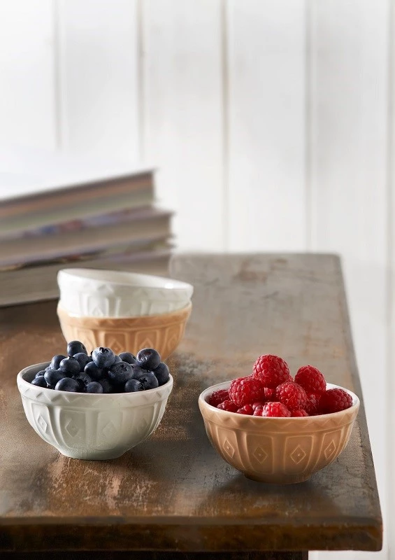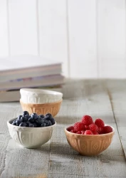 - zestaw 4 miseczek o pojemności 0,2 l (2x kolor beżowo-biały, 2x kremowo-biały),