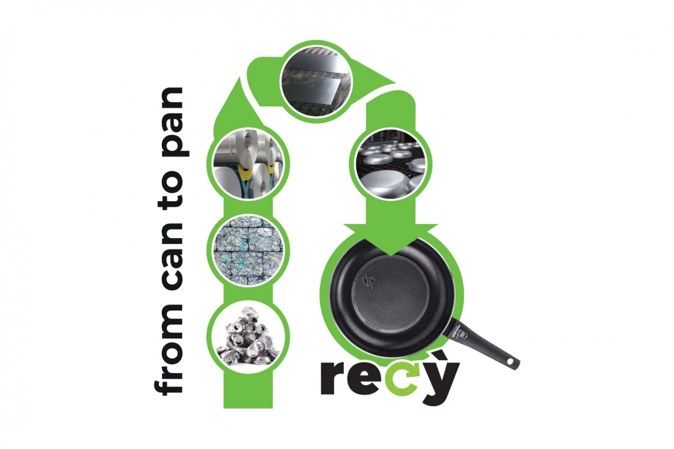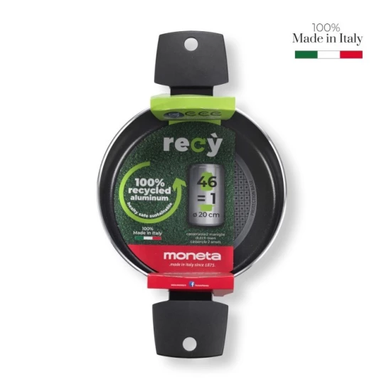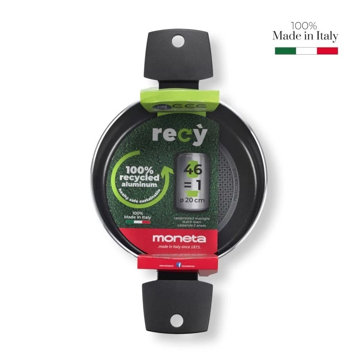 - wykonany z aluminium pochodzącego z puszek oddanych do recyklingu (na dnie każdego naczynia znajduje się informacja o ilości puszek wykorzystanych do produkcji danego egzemplarza),