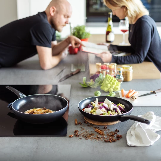 - nadaje się do użytku na wszystkich rodzajach kuchenek, także indukcyjnej i w piekarniku,