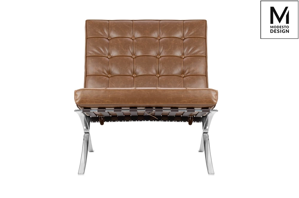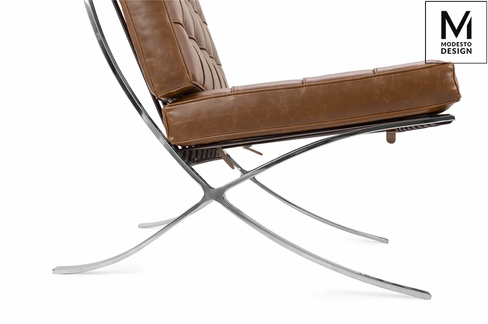 MODESTO fotel BARCELON VINTAGE PU - ekoskóra, stal polerowana.
