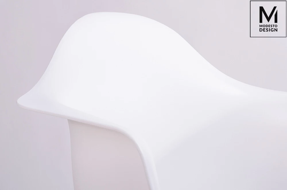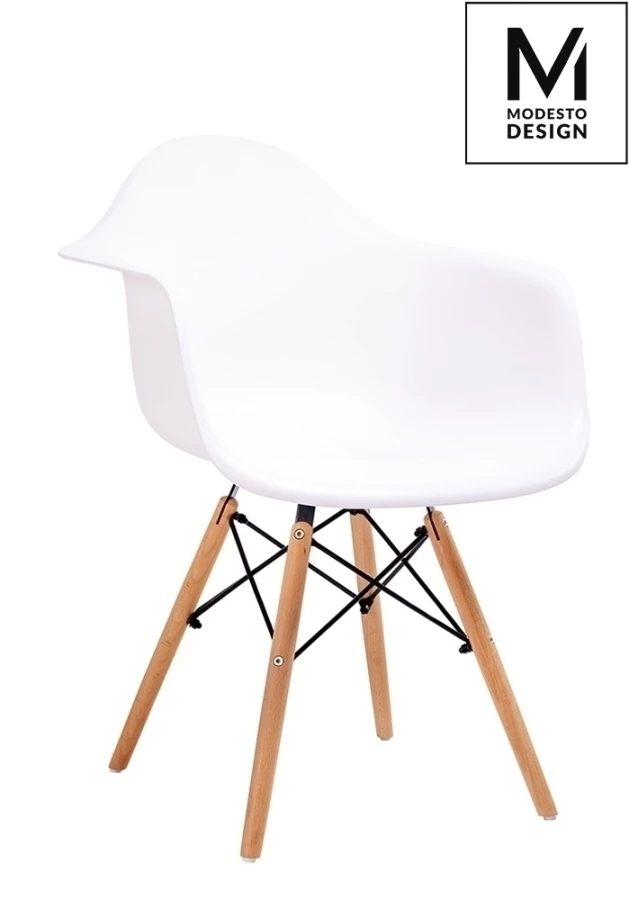 MODESTO fotel DAW DSW biały - polipropylen, nogi bukowe