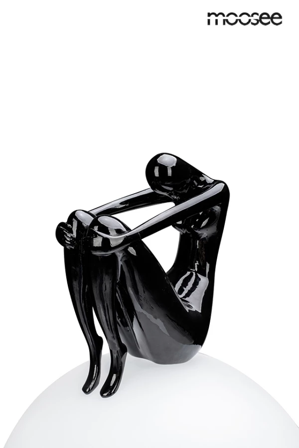 Duży okrągły biały klosz wykonano z polipropylenu, a wyjątkowość lampy podkreśla piękna kobieca postać wykonana z żywicy, która siedzi na kloszu.