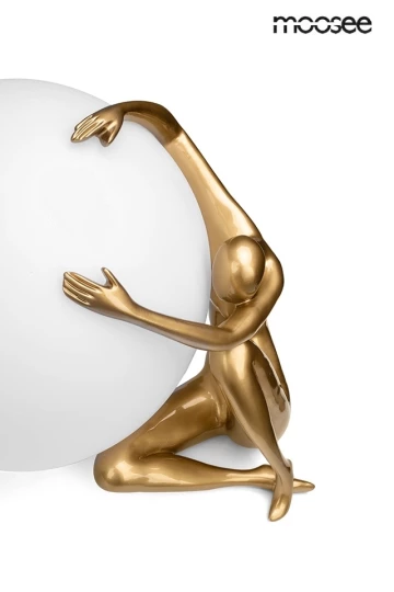 Duży okrągły biały klosz wykonano z polipropylenu, a wyjątkowość lampy podkreśla piękna kobieca postać wykonana z żywicy, która otula klosz.