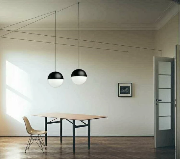 Dzięki zastosowaniu 5-metrowego kabla w każdym z kloszy można zamontować lampę w kreatywny sposób, przeprowadzając przewód na przemian, tworząc geometryczne kształty.