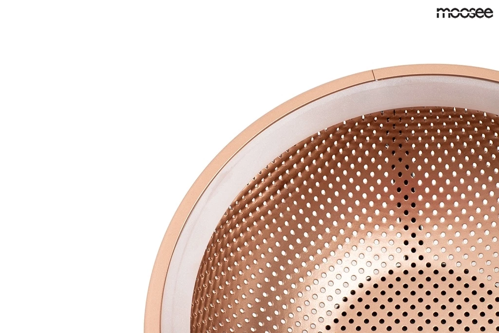 Oprawa wykonana jest z połączenia akrylu i aluminium w miedzianym kolorze.