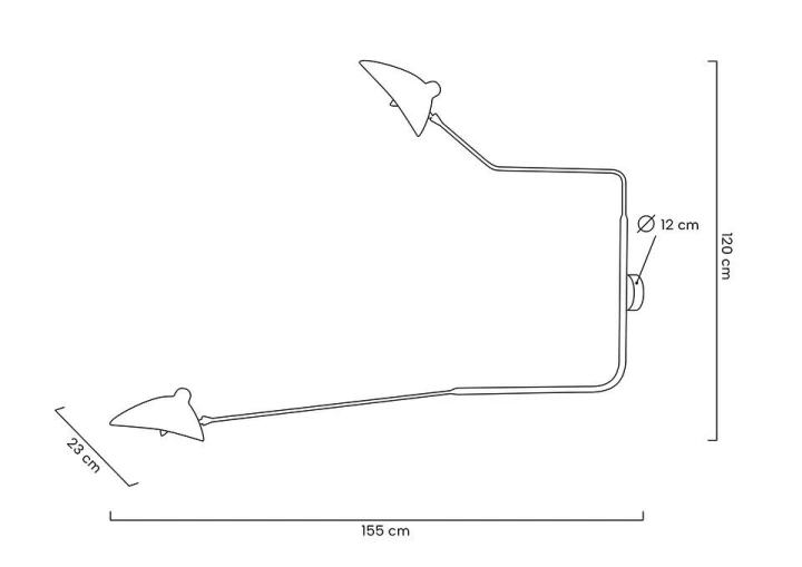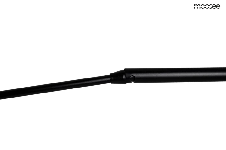 W całości wykonana z metalu w kolorze czarnym satynowym. Cięty i formowany ręcznie klosz, umieszczony jest po obu stronach na długim ramieniu.