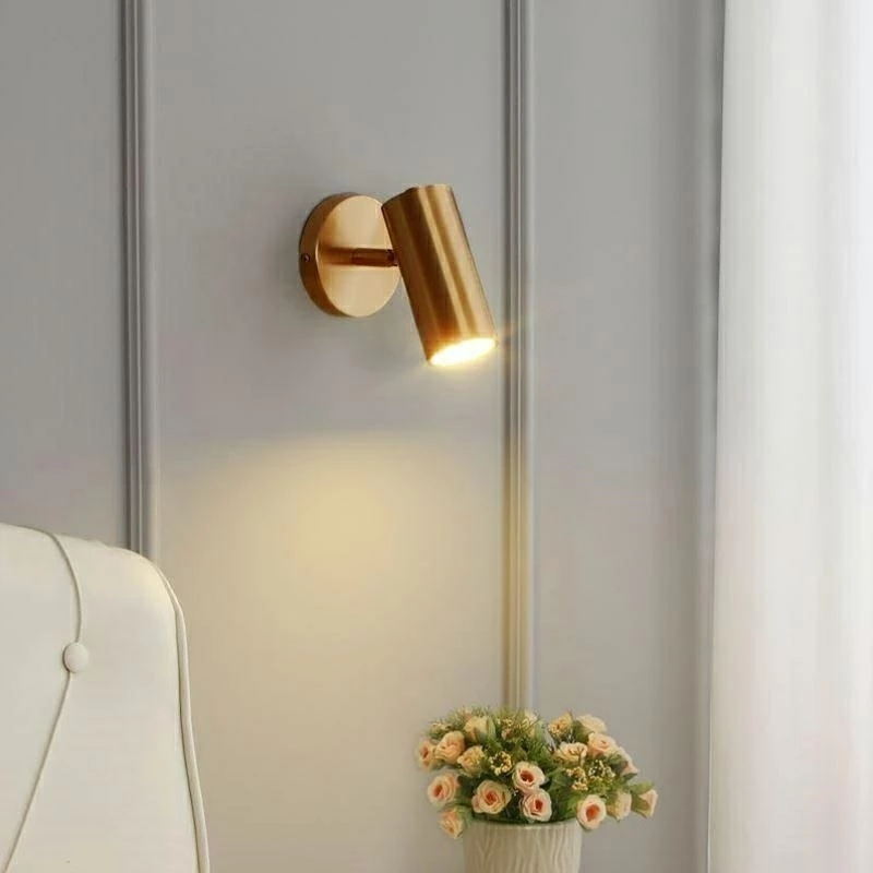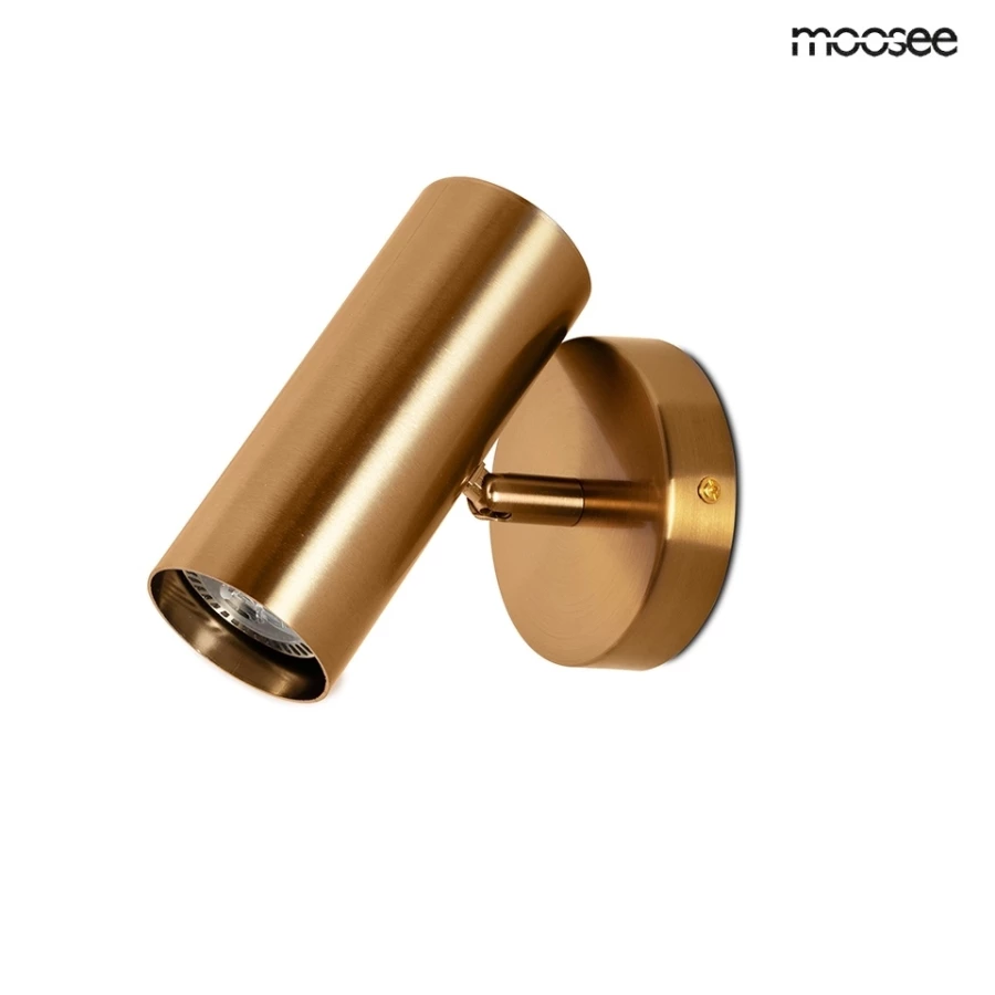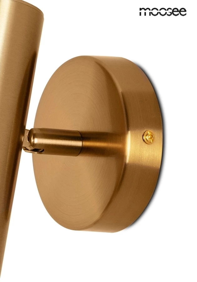Kinkiet wykonany ze stali i aluminium w kolorze złotym.