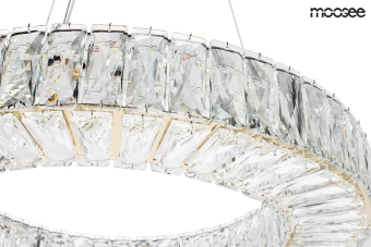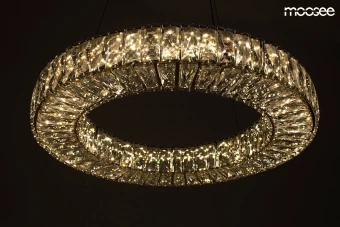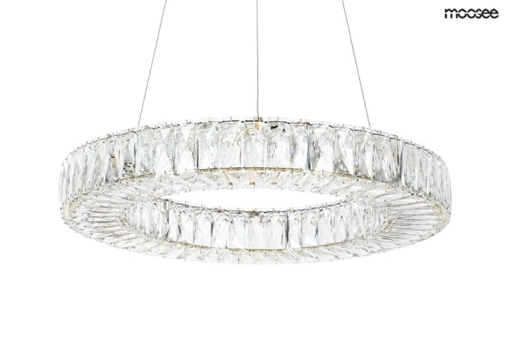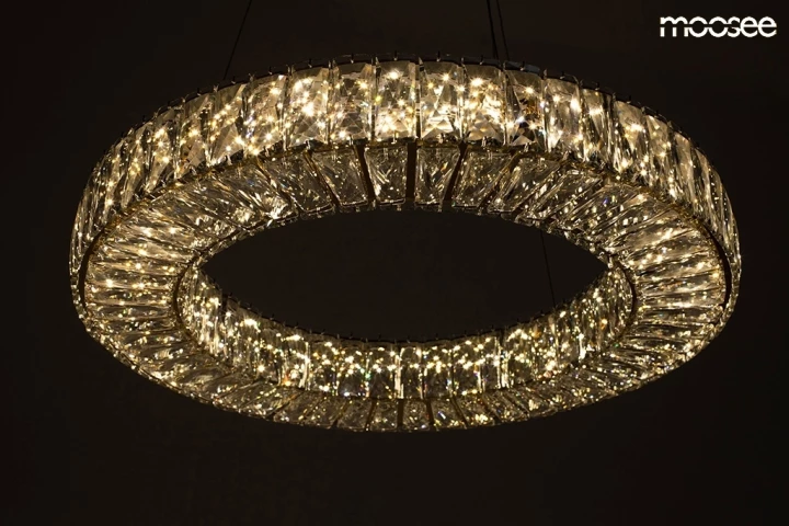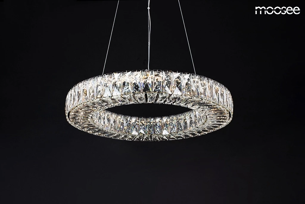 Kryształowe szkło zamocowane na obręczy w niezwykły sposób rozprasza strumień światła.