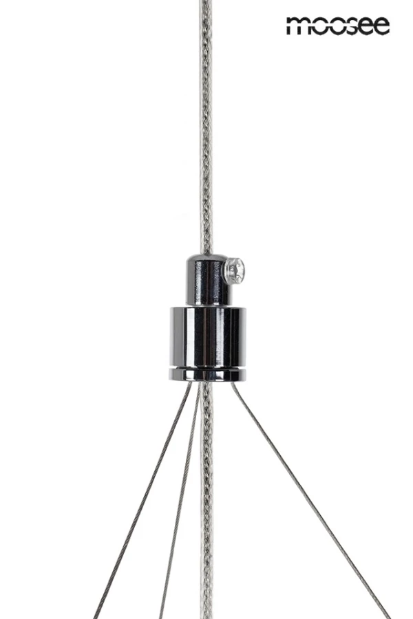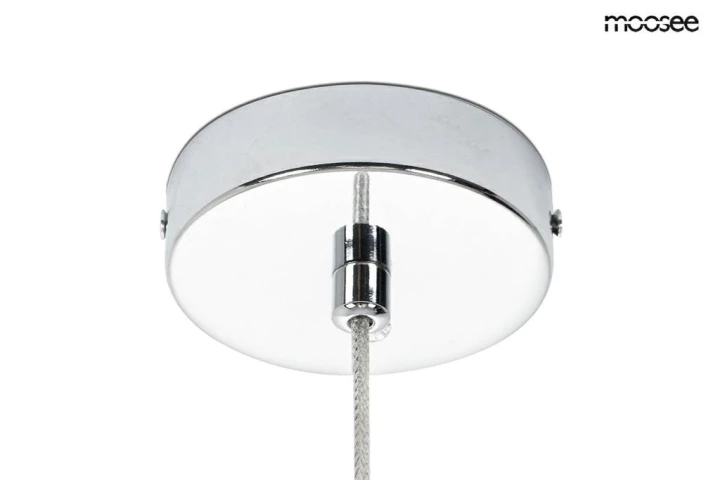 Czarne elementy wykonano ze stali, co doskonale kontrastuje z krystalicznym wyglądem lampy.