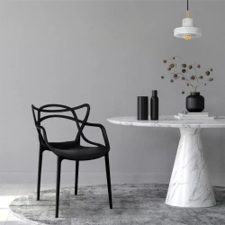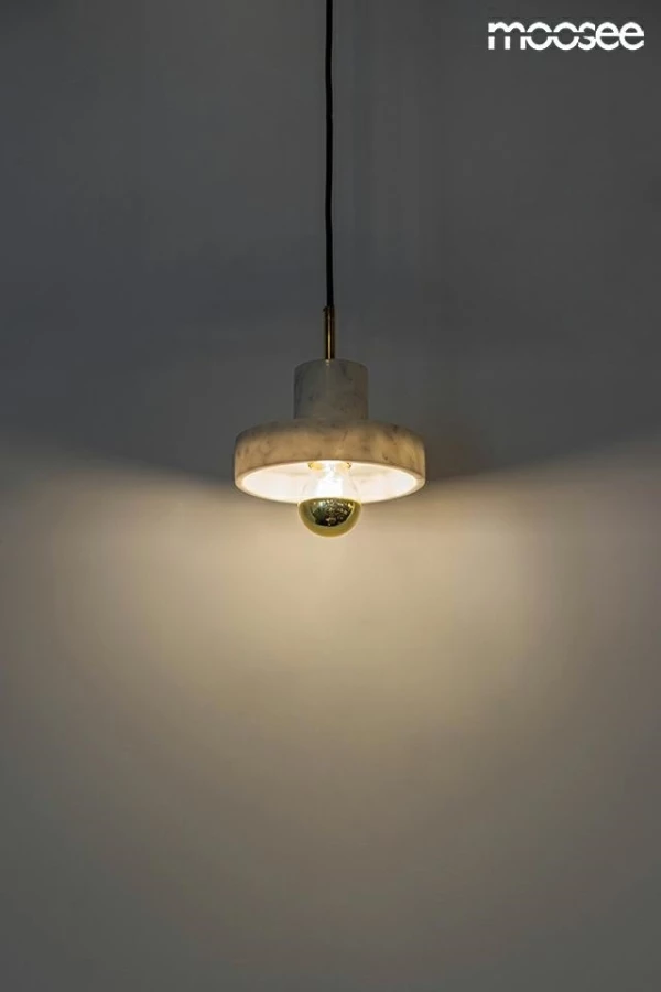 Okrągły klosz wykonany z jasnego marmuru tworzy wyjątkowo elegancką kompozycję.