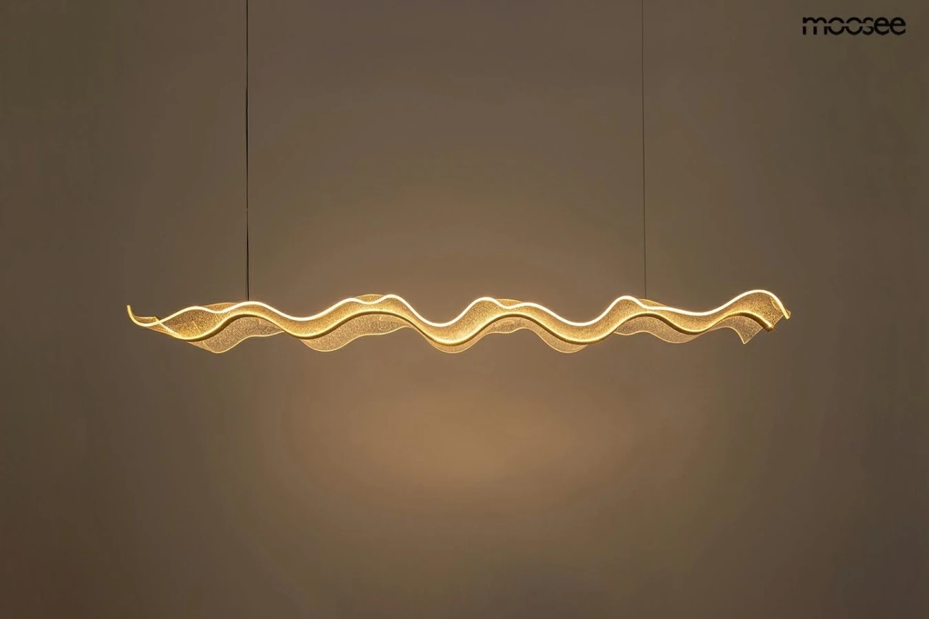 Nierówne, designerskie linie wykonane ze stali o złotym wykończeniu w połączeniu z akrylem nadają prosty, nowoczesny wygląd.