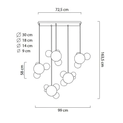 Całość przypomina połączone bańki mydlane. Snop światła skierowany jest zarówno do dołu oraz do góry.