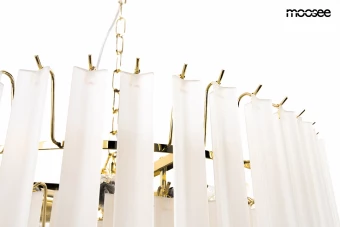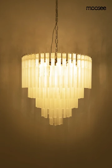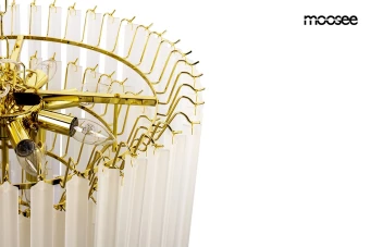 Wykonana ze stali, z kloszami z mlecznobiałego, matowego szkła, lampa subtelnie rozprasza światło, wprowadzając do wnętrza ciepły i przytulny nastrój.