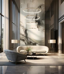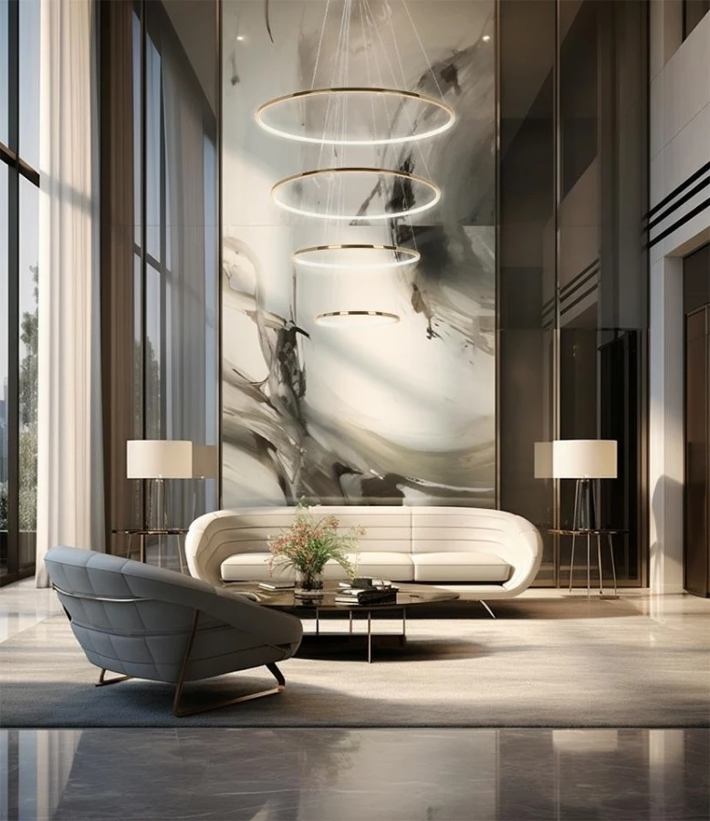 Całość składa się z 4 okręgów, które można powiesić kaskadowo bądź w dowolnej konfiguracji co pozwala w pełni dopasować lampę do swoich potrzeb.