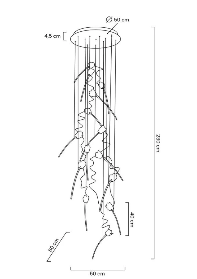 Przezroczyste, akrylowe klosze imitują kwiaty, tulipany, które w niezwykły sposób rozpraszają strumienie światła.