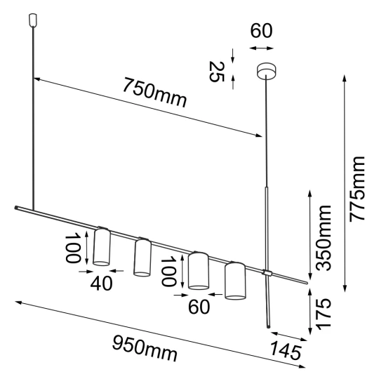 Wisząca Poczwórna alha S - stal lakierowana- CZARNA struktura - Czarny (1000 mm) /4000K