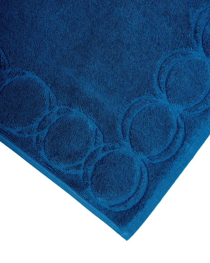 Dywanik Łazienkowy Monogram Opus z kolorowej organicznej bawełny frotte o splocie intrecciato z wytłoczonym wzorem oraz ozdobną lamówką. Bawełna podwójnie czesana, wstępnie prana. Dywanik posiada podwójne przeszycia w tym samym kolorze i zamknięte rogi.