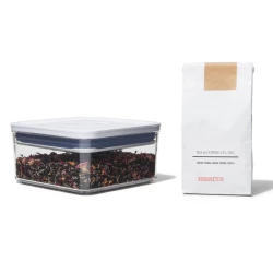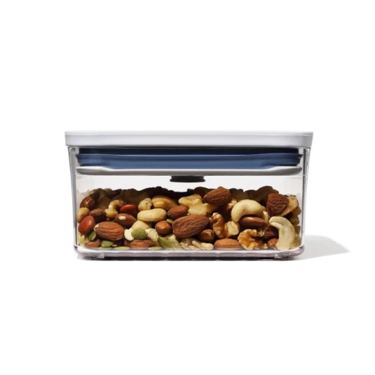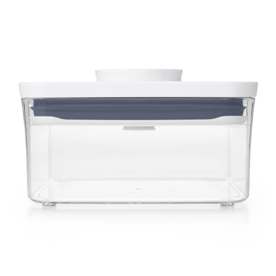 | Pojemnik POP z kolekcji Good Grips marki OXO, - duża pojemność, do 1,1 l, - doskonały na ciastka, przekąski, płatki i sypkążywność, - o kwadratowej podstawie, - wygodne przesypywaniedzięki wygodnemu przyciskowi, - można go myć w zmywarce. |