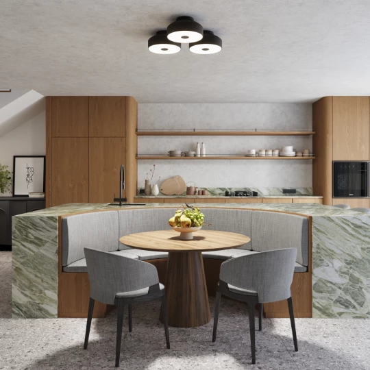 OMIQ to lampa sufitowa, która łączy prostotę z wyjątkowym designem. Jej zaokrąglony, miękki kształt i matowe wykończenie sprawiają, że z łatwością wpisuje się w każde wnętrze – od minimalistycznych aranżacji po bardziej odważne, kolorowe przestrzenie.