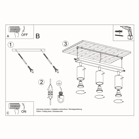 Zapomnij o uciążliwym montażu i omdlałych ramionach. Plafon sufitowy na 3 klosze zamontujesz szybko i z łatwością, więc wystarczy chwila, by zacząć cieszyć się jego blaskiem.