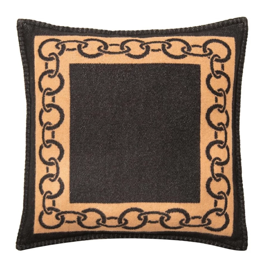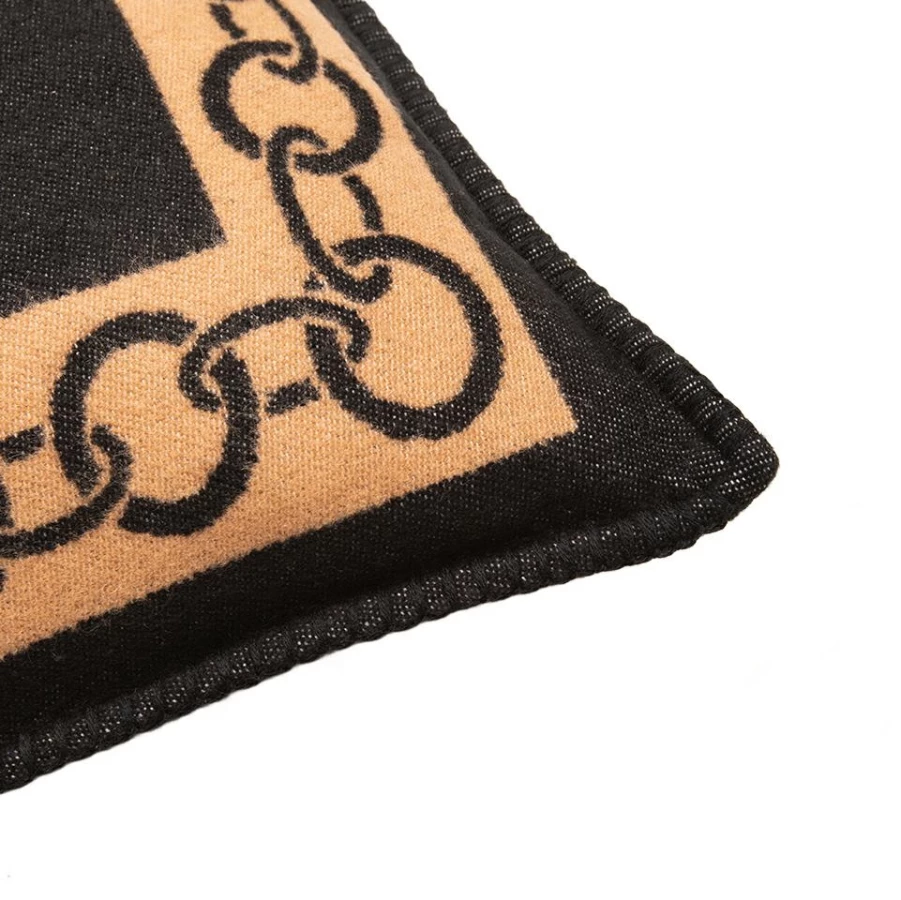Ponadczasowy wzór łańcucha w połączeniu z klasyczną kolorystyką czerni i brązu tworzy luksusowy efekt.