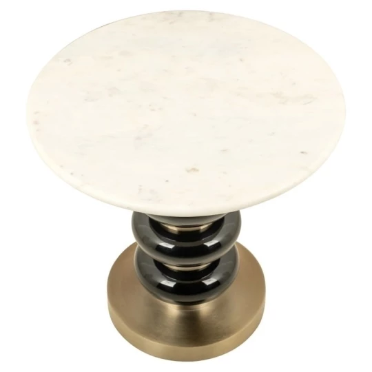 Luksusowy okrągły blat z białego marmuru wprowadzi do pomieszczenia element klasycznej elegancji.