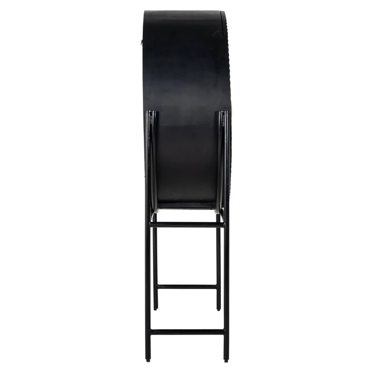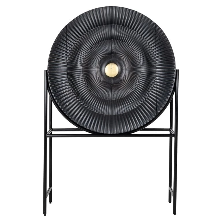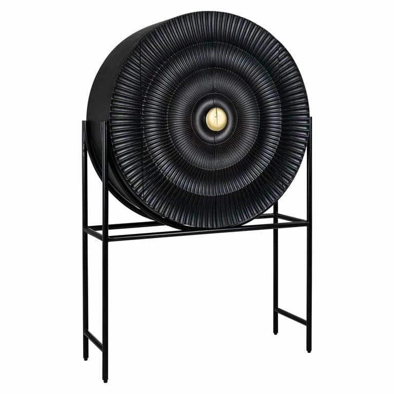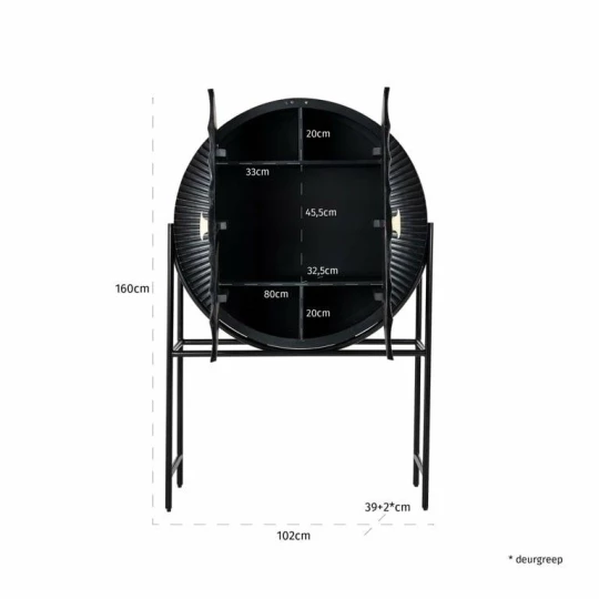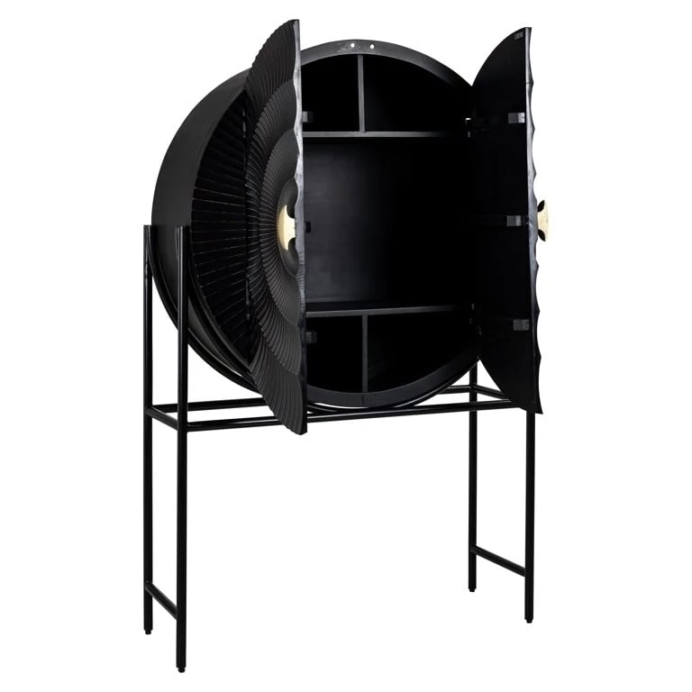 Luksusowy, szykowny styl zapewniają oryginalne drzwiczki w kształcie okręgu o zdobionym czarnym wykończeniu ze złotym uchwytem.