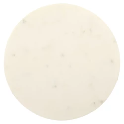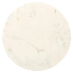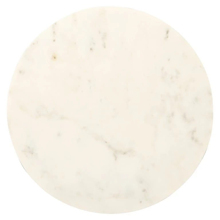 Każdy stolik zbudowany jest z okrągłego blatu wykonanego z białego marmuru, który wnosi do pomieszczenia odrobinę luksusu i wyrafinowania.