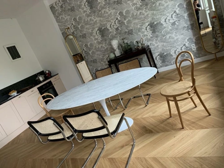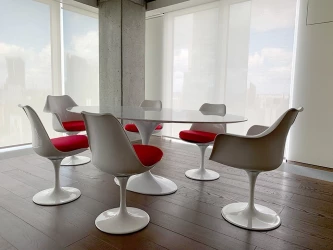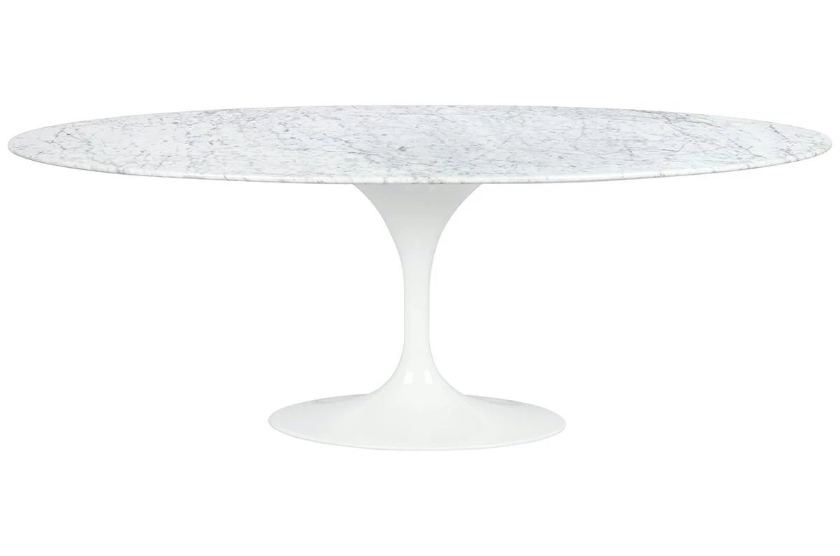 Stół TULIP ELLIPSE MARBLE CARRARA biały - blat owalny marmurowy, metal