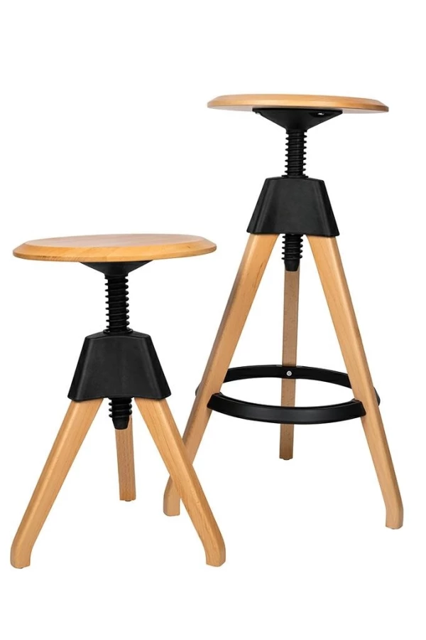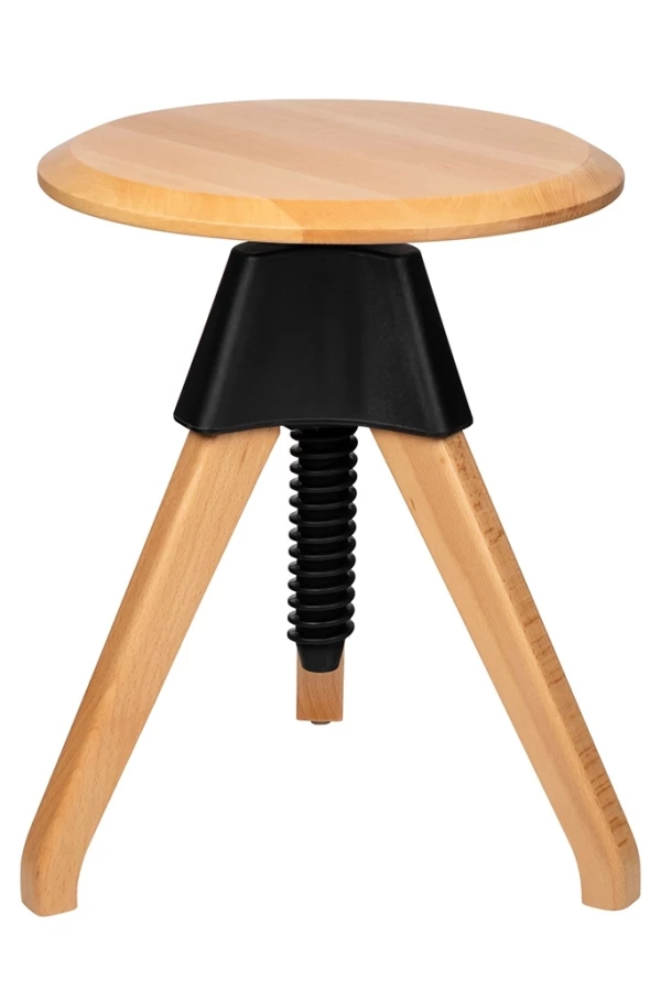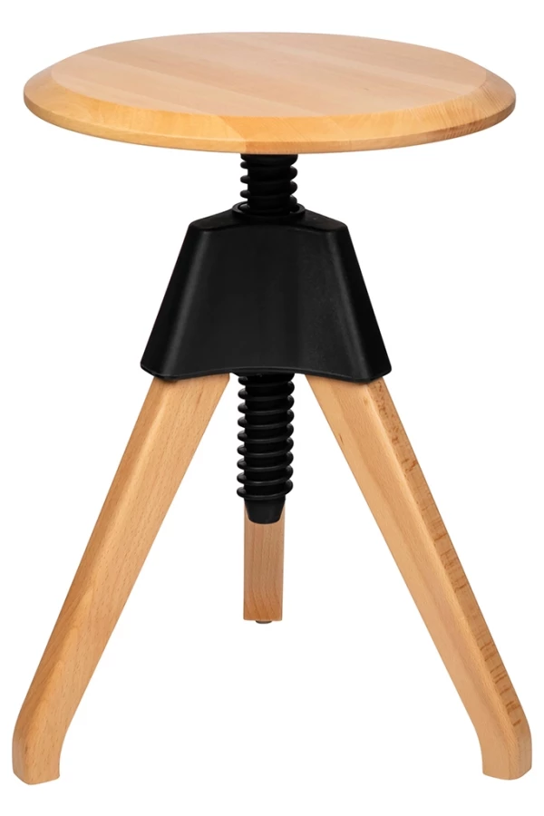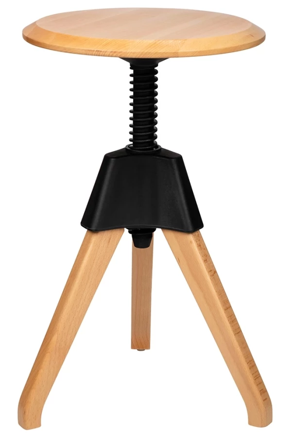 Siedzisko i nogi wykonane z drewna bukowego połączono czarnym elementem montażowym z polipropylenu.