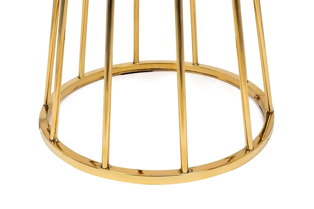 Stabilna podstawa z metalowych, chromowanych poprzeczek w odcieniu złota dodaje całości luksusowego charakteru.