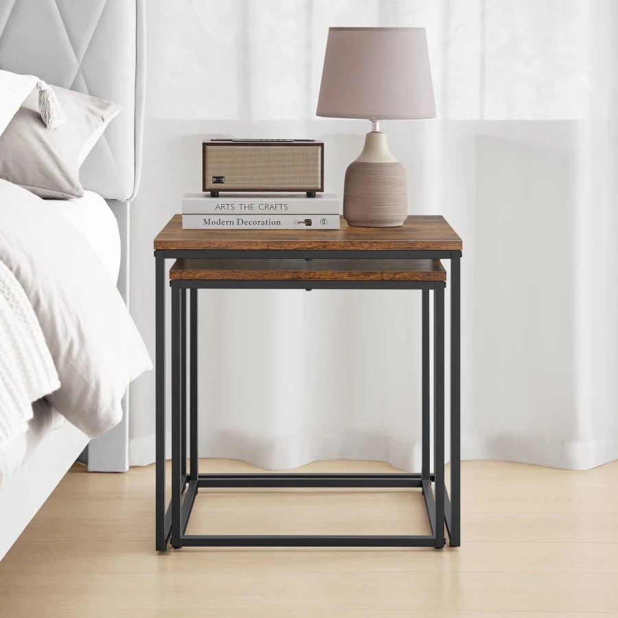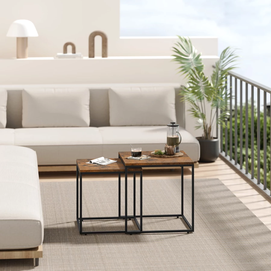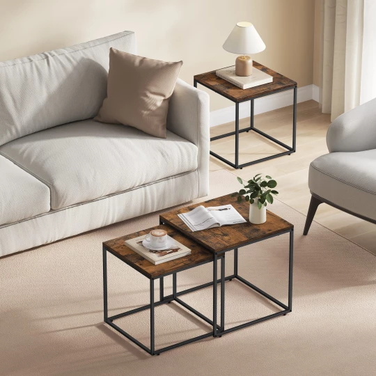 Stolik kawowy kwadrat 2szt - rustykalny / nogi czarne