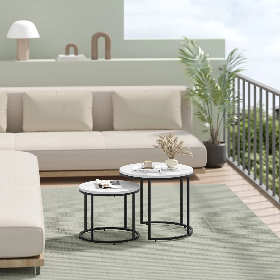 Stolik kawowy okrągły 2szt - marmur / nogi czarne
