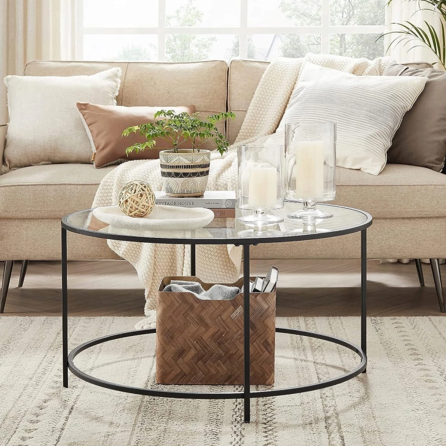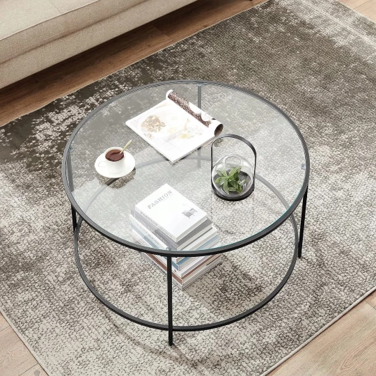 Stolik Kawowy Szklany Okrągły Ława - LGT021B01