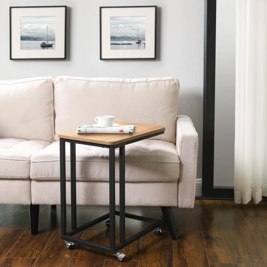 Stalowa konstrukcja zapewnia stabilność mebla. 4 skrętne kółka zapewniają stolikowi mobilność.