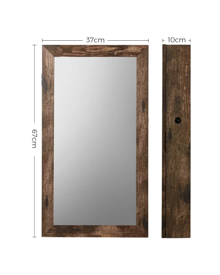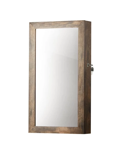 SZAFKA WISZĄCA Z LUSTREM NA BIŻUTERIĘ, ZEGARKI, RUSTYKALNY BRĄZ