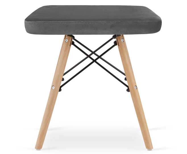 Taboret WERK - szary aksamit / nogi naturalne x 1