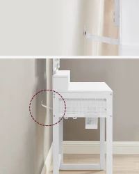Suszarkę do włosów zawsze warto mieć po ręką, dlatego do toaletki dołączony jest uchwyt na suszarkę, który możemy zawiesić po prawej albo lewej stronie toaletki.