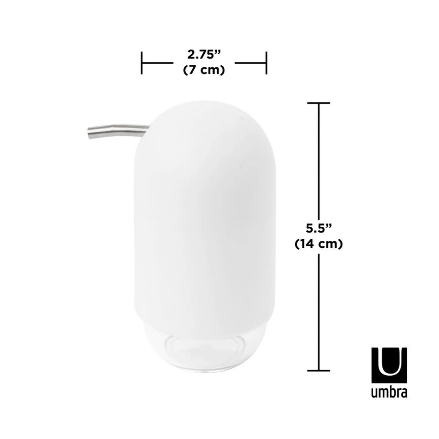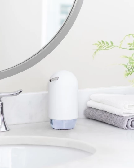 Dozownik do mydła Touch został wykonany z tworzywa sztucznego o matowej powierzchni połączonego z przezroczystym materiałem.