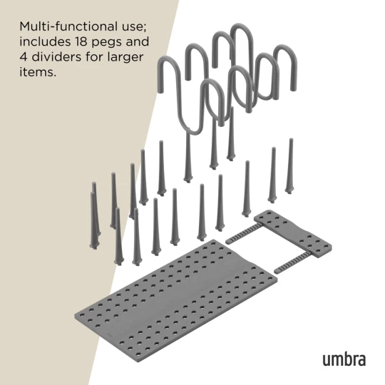 Dzięki regulowanej podstawie i konfigurowalnym kołkom można go dostosować do każdej szafki lub szuflady.