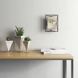 Nadaj nowy wymiar swoim zdjęciom dzięki tej pryzmatycznej ramie z drutu o rozmiarach 10 cm x 15 cm, w której zdjęcie unosi się pomiędzy dwiema taflami szkła.