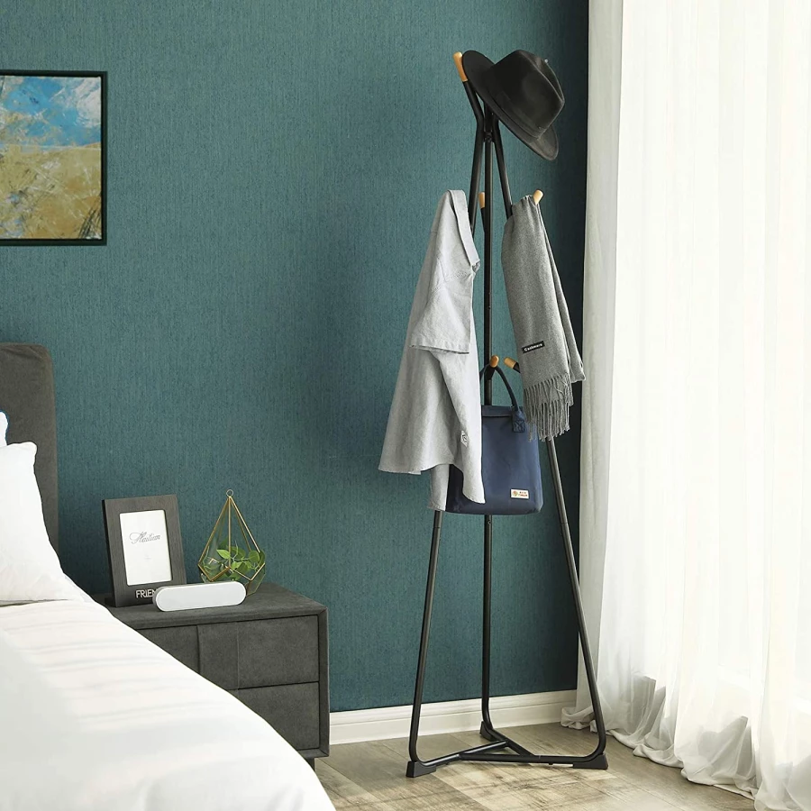 Trójkątna podstawa zapewnia stabilność wieszaka podłogowe.