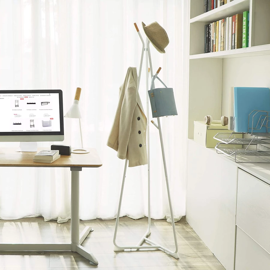 Trójkątna podstawa zapewnia stabilność wieszaka podłogowe.