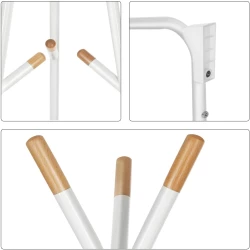 Ten niewiele zajmujący miejsca produkt posiada stabilną trójkątną podstawę, dzięki której mamy pewność, że produkt nie będzie się przechylał wraz z dodatkowym obciążeniem. Ponadto produkt został wyposażony w 9 zaokrąglonych, bukowych haczyków do przechowywania płaszczy, kurtek, toreb czy też szali i czapek.