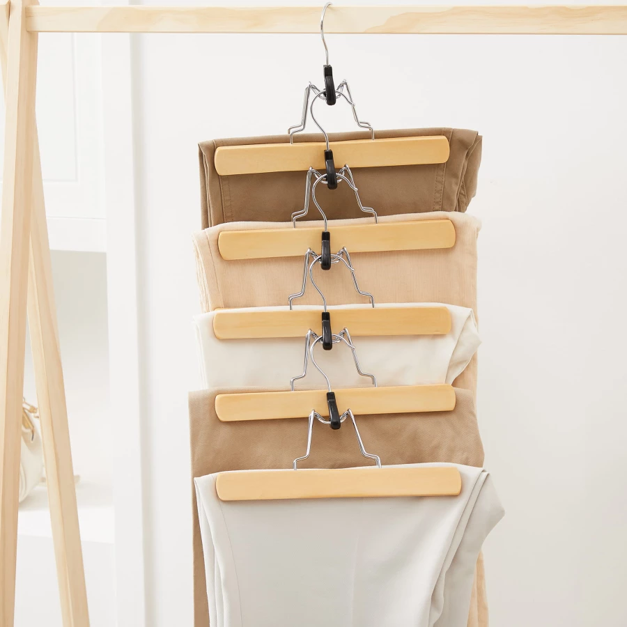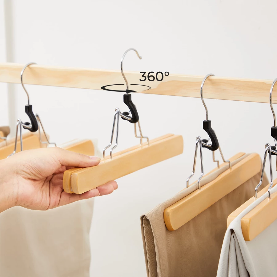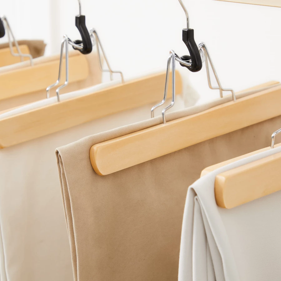 Zestaw 12 sztuk drewnianych wieszaków na spodnie to niezbędny element wyposażenia naszych szaf.