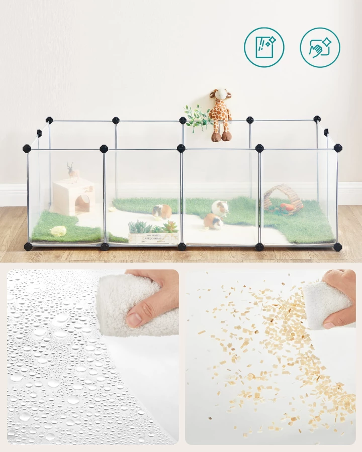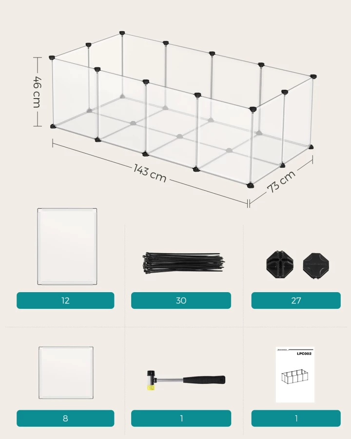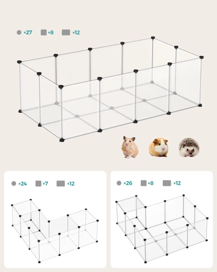 Modułowy kojec dla niewielkich zwierząt domowych takich jak chomik, świnka morska, jeż, królik miniaturka. Zagroda jest idealnym rozwiązaniem dla właścicieli zwierząt, szczególnie gdy zajdzie potrzeba wydzielenia swoim pupilom bezpiecznej przestrzeni w domu.